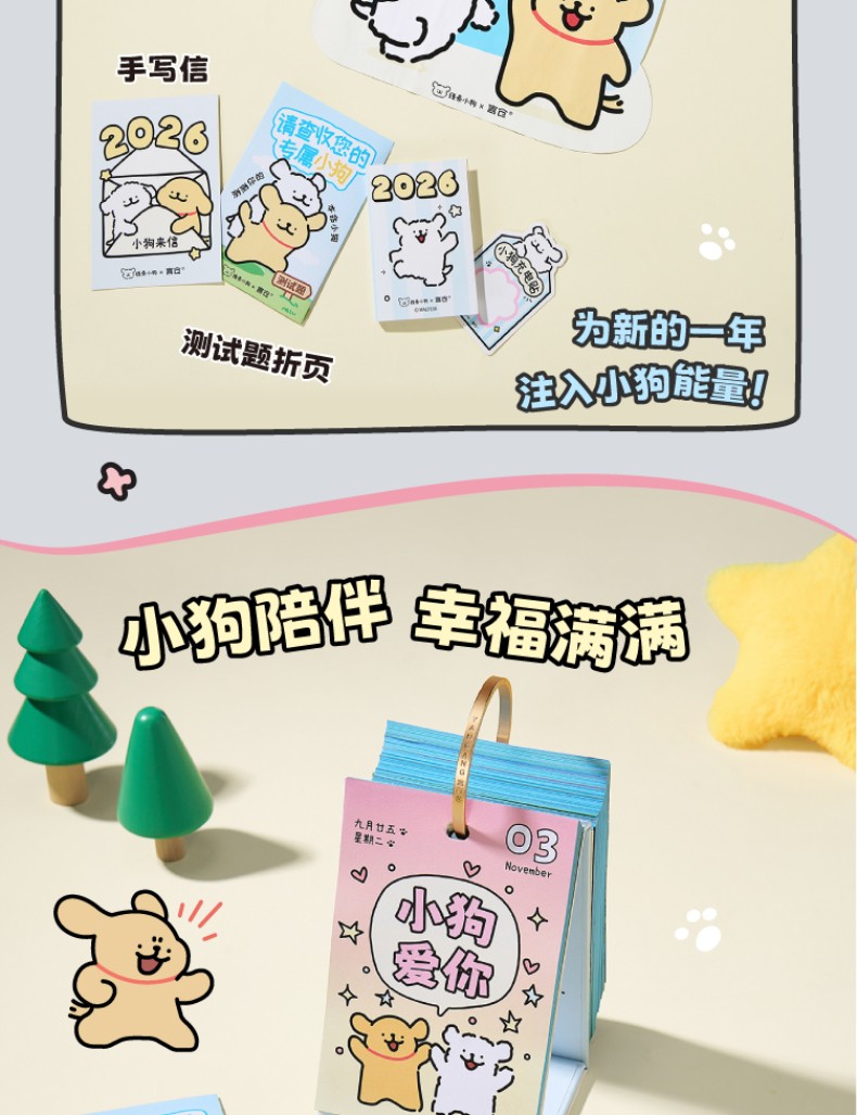 線條小狗2026日曆 快樂小狗桌曆 新年生日禮物
